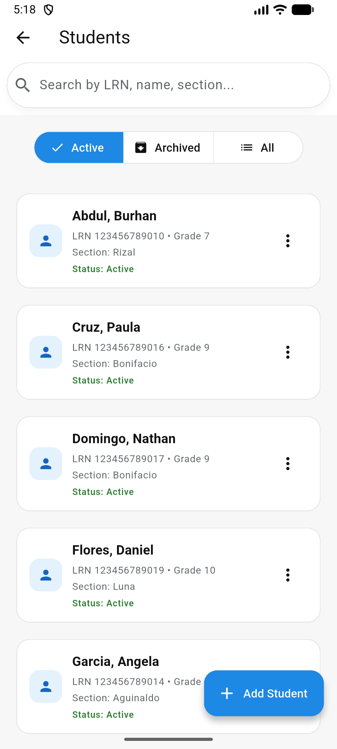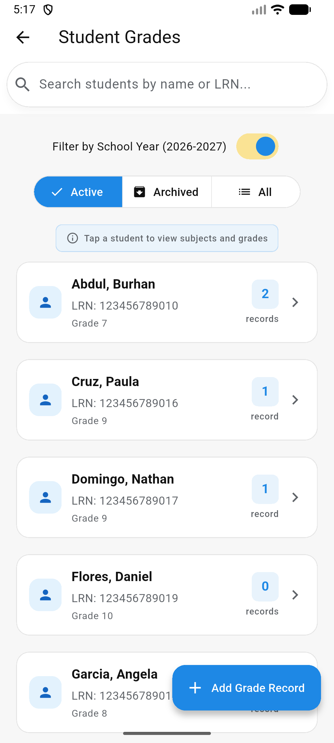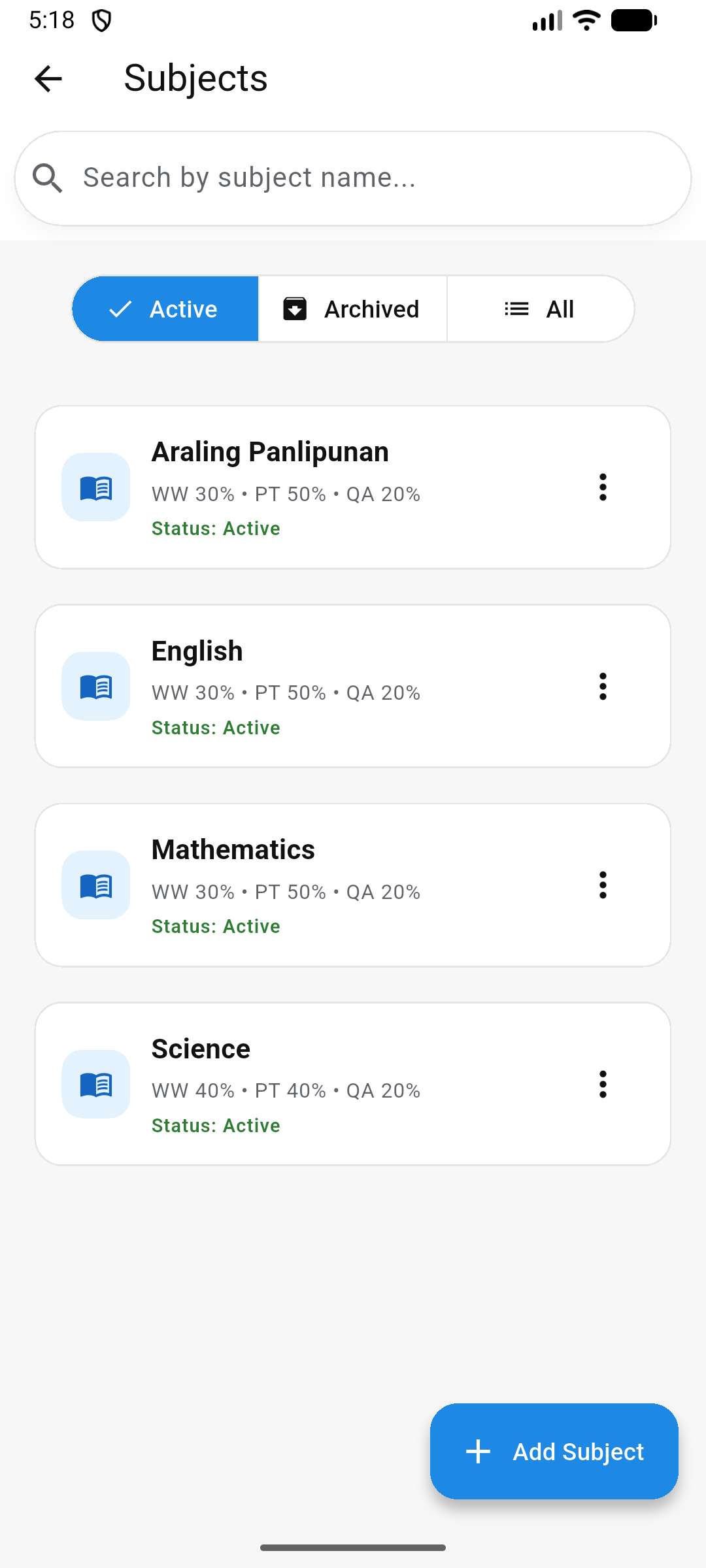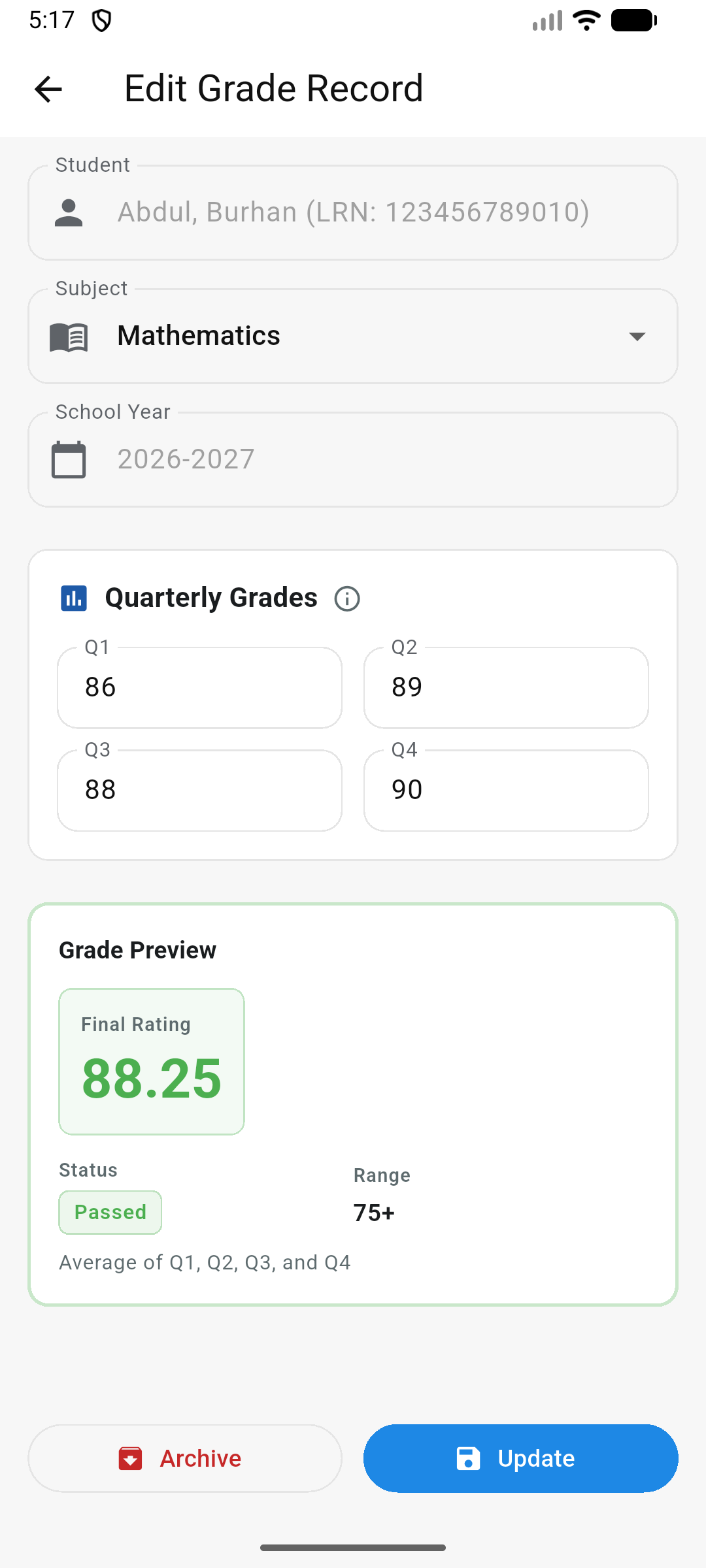 Offline junior high grading app for sections, students, subjects, and grades. Junior High School Grading Manager is a simple offline app for organizing student records and recording grades for junior high school classes. Use it to manage sections, students, and subjects in one place, then enter quarterly grades and review each student's final rating for the selected school year. The app is designed for quick local record-keeping with a clean dashboard and easy-to-manage lists. With built-in support for Grade 7 to Grade 10 workflows, the app helps teachers and school staff keep class data organized without needing an internet connection or a complicated setup. What you can do inside the app: - Create and manage sections by grade level and adviser - Add and organize student profiles with LRN and section assignment - Set up subjects with grading component weights - Enter quarterly grades for Q1, Q2, Q3, and Q4 - Automatically view final rating and pass/fail status - Filter records by school year - Archive and restore records when needed - Start quickly with optional sample data This app is ideal for schools or teachers who want a focused grading tool for day-to-day use without relying on constant connectivity. Key Features: - Offline-first grade management - Dashboard for grade records, students, subjects, and sections - Student management with LRN, grade level, and section - Subject management with grading weights - Bulk grade entry for quarterly records - Automatic final rating calculation - Passed, Failed, and Pending status tracking - School year filtering - Archive and restore support for records - Optional sample data for quick setup Who Is It For: - Junior high school teachers - Class advisers - School registrars or academic staff - Small schools needing a simple local grading tool - Users handling Grade 7 to Grade 10 records Notes: - No special permissions are required beyond standard app functionality. MacOS and iOS coming soon!